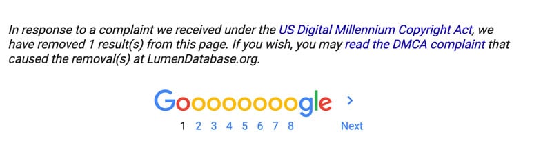 Pro tip: One of the downsides of going straight to Google removal tools is that it’s going to leave a trace. Google’s Lumen database puts itself at the bottom of every search query that has a request.