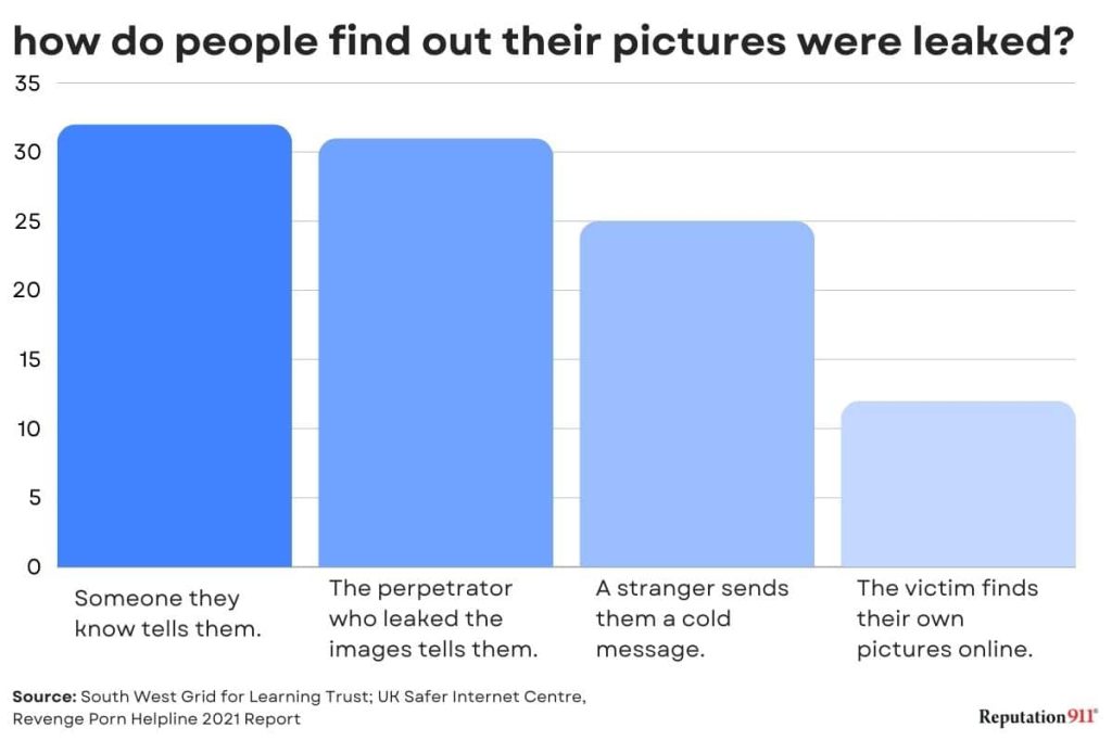 Victims rarely discover leaked images on their own — in fact, only about 12% find the photos online themselves. According to a study from the UK Safer Internet Centre: